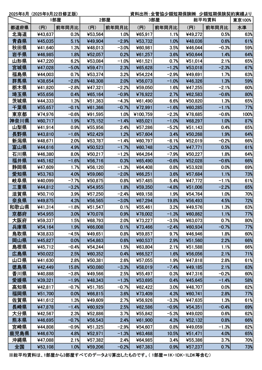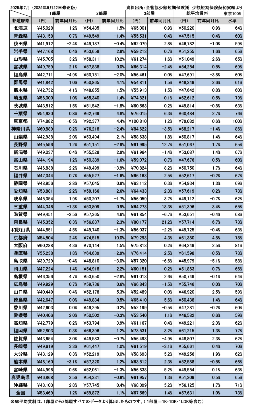 全国賃貸管理ビジネス協会では、定期的に全国の家賃動向を調査しています。