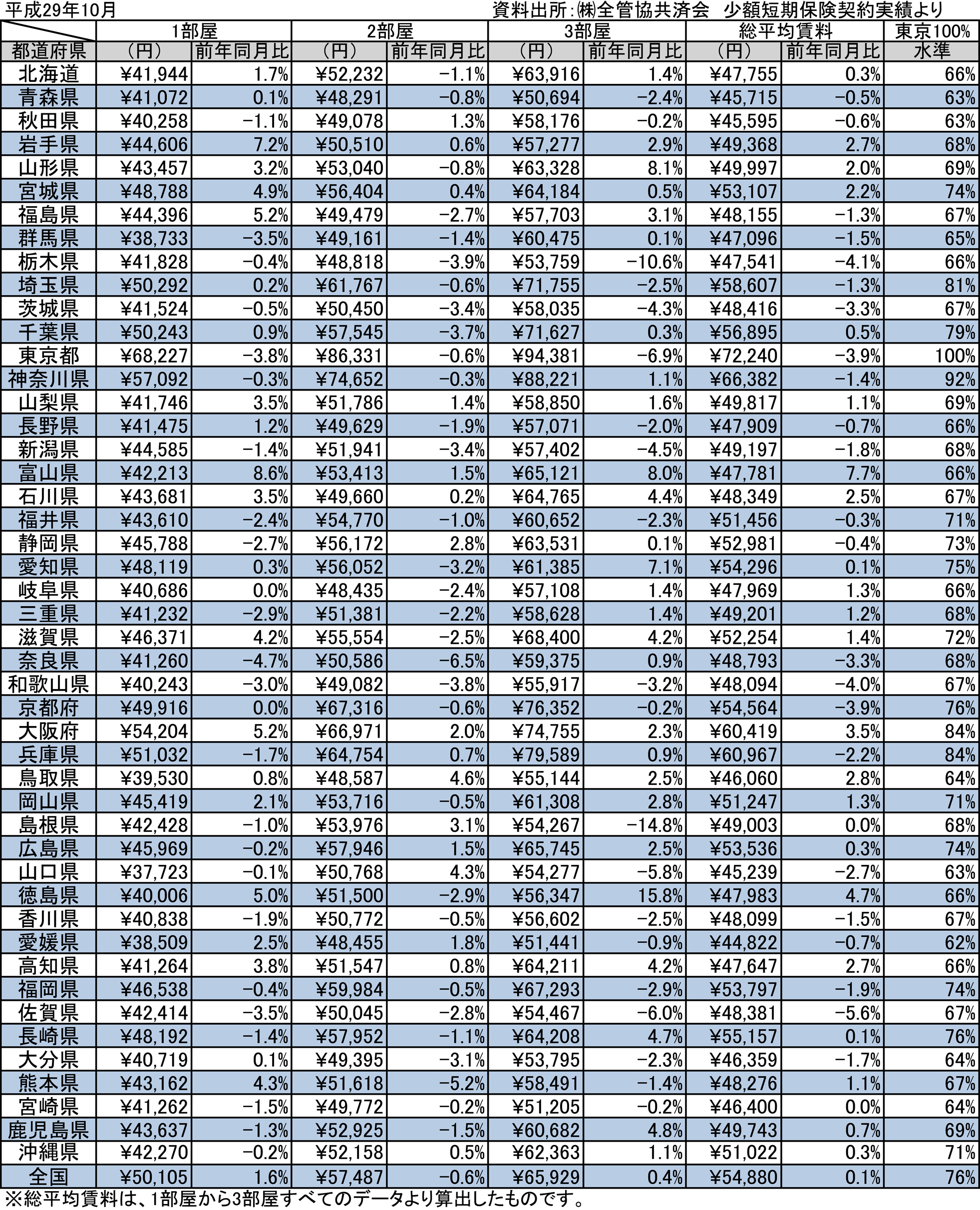 全国家賃動向 全国平均家賃による間取り別賃料の推移 全国賃貸管理ビジネス協会では、定期的に全国の家賃動向を調査しています。 2017年10月調査 契約ベースによる統計につき、一般的な募集賃料ベースの統計よりも、資料は下回っています。 全国家賃動向一覧へ戻る