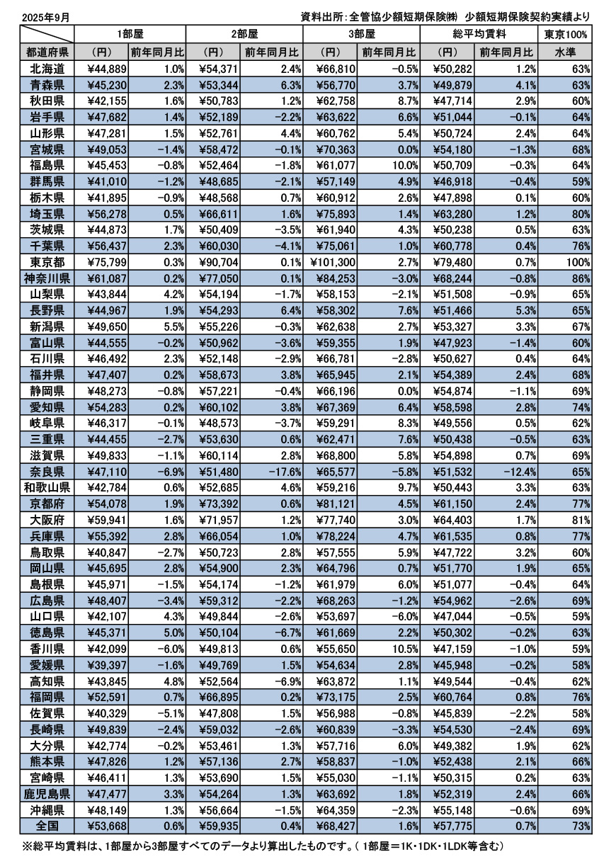 全国家賃動向 全国平均家賃による間取り別賃料の推移 全国賃貸管理ビジネス協会では、定期的に全国の家賃動向を調査しています。 2025年9月調査 契約ベースによる統計につき、一般的な募集賃料ベースの統計よりも、資料は下回っています。 全国家賃動向一覧へ戻る